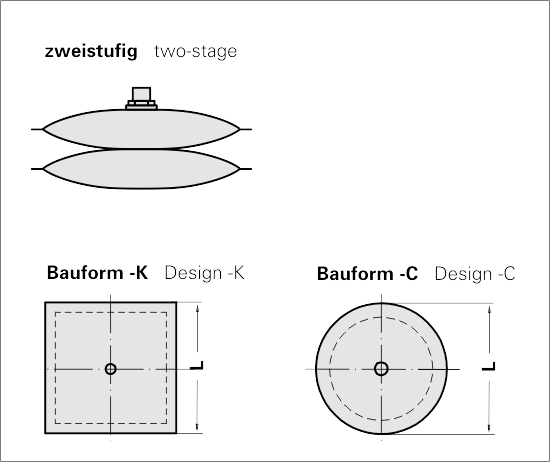 Hebekissen für kleine Einbauräume, zweistufig. Lieferbar in quadratischer und runder Ausführung. Anwendung: Klemmen, Absperren, Pressen, Dämpfen, Greifen, Führen, Schieben, Dichten, Pressen, Flanschen, Handhaben, Heben, Verdichten, Drücken, Blockieren, Bewegen oder Isolieren.