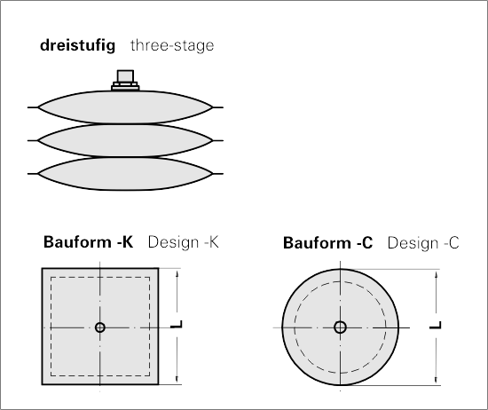Rundes Druckluftkissen für kleine Einbauräume, dreistufig. Lieferbar in quadratischer und runder Ausführung. Anwendung: Klemmen, Absperren, Pressen, Dämpfen, Greifen, Führen, Schieben, Dichten, Pressen, Flanschen, Handhaben, Heben, Verdichten, Drücken, Blockieren, Bewegen oder Isolieren.