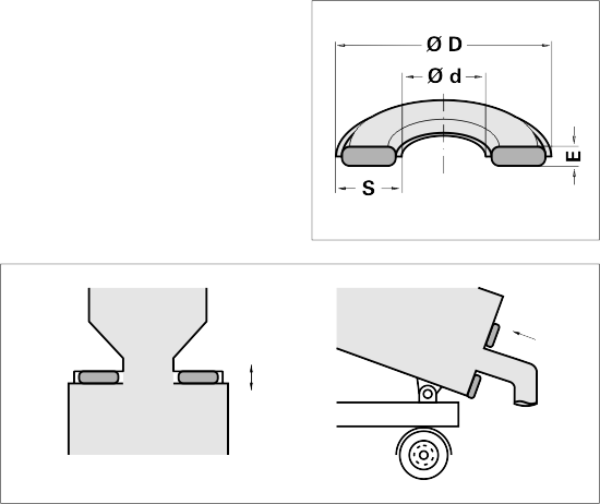 Ringkissen, flach. Betätigung durch Druckluft. Anwendung: Klemmen, Absperren, Pressen, Dämpfen, Greifen, Führen, Schieben, Dichten, Pressen, Flanschen, Handhaben, Heben, Verdichten, Drücken, Blockieren, Bewegen oder Isolieren.