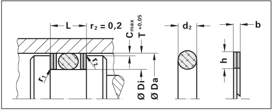 Back-up ring, spiral shaped, for external sealing applications.Depending on one-sided or alternating pressurisation, one or two back-up rings are used. For details on groove sizing (groove width L), please refer to our application catalogue or contact our application technology department.