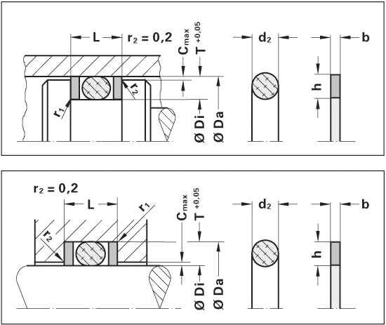 Elastic, endless back-up ring with redeformation after installation at the groove bottom. For supporting o-rings in static applications. Safe against twisting and shearing.