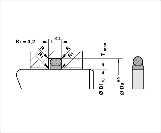 Material of Glide Ringmod. PTFE/Bronze (17T) Material Properties of Glide RingVery high pressure resistance, high wear resistance, high thermal conductivity, not suitable for acids and aqueous solutions O-Ring MaterialNBRFKM