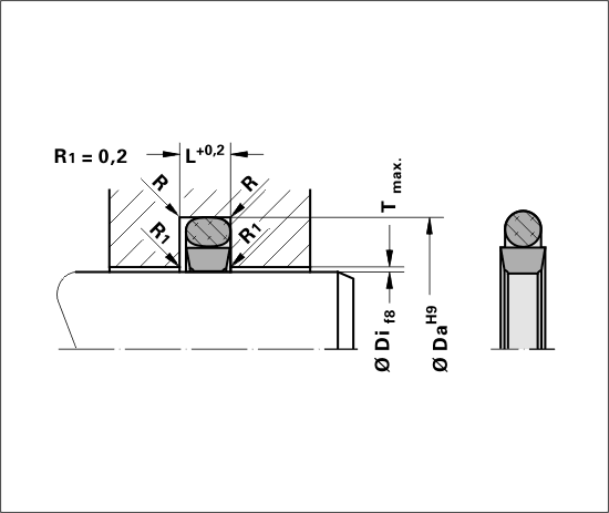 | Material of Glide Ringmod. PTFE (25T) | Material Properties of Glide RingVery good chemical resistance, suitable for food stuff applications | O-Ring MaterialFKM |