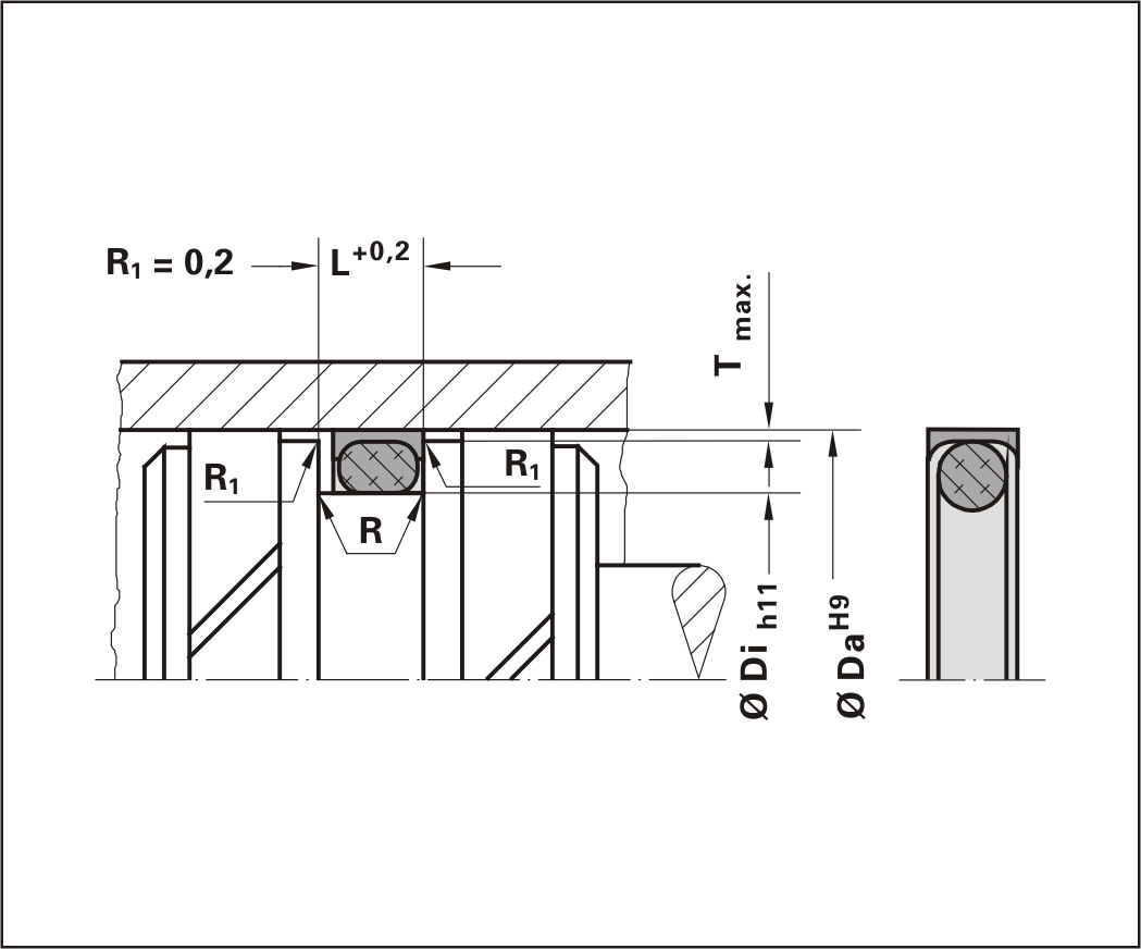 Glide seal set for O-ring fitting areas according to ASA 568 A. Depending on compound and elastomer, adaptable to many media and operating conditions.