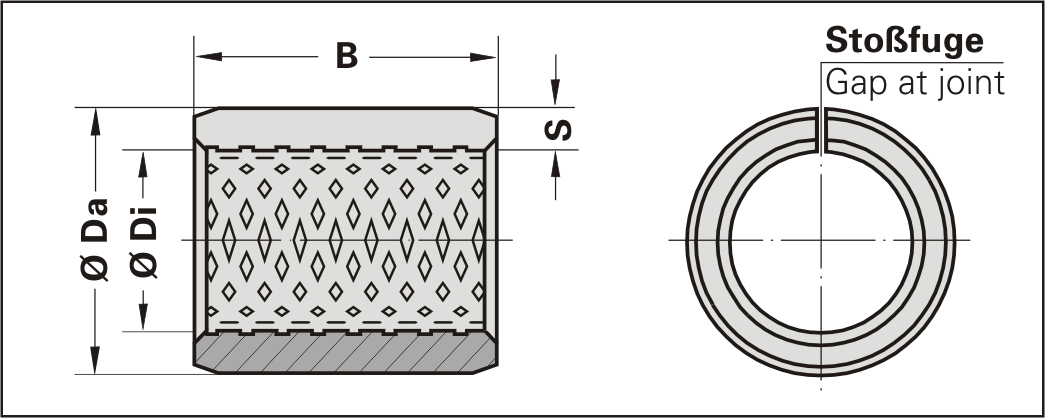 | Profile | Di [mm] | Da [mm] | B [mm] | Material | Mat. No. | V | Quantity |