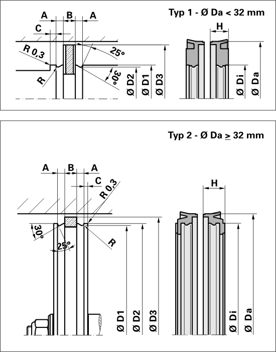 Other materials are available for very high or very low operating temperatures. For detailled information, please look at the specific PDF catalogue or contact our application engineers.