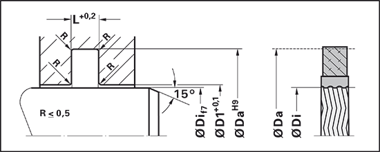The 1R6 rotary seal sets can be used even at maximum permissible pressure and in the case of pressure peaks without the need for additional anti-extrusion rings. They can fundamentally also be used as end seals. However, for this application we recommend our profile 1H0.