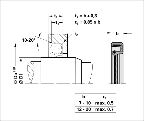 Shaft seal, DIN 3760, Form A, with alternating twist.