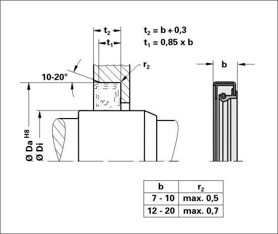 | Profile | Di [mm] | Da [mm] | b [mm] | Material | Mat. No. | V | Quantity |