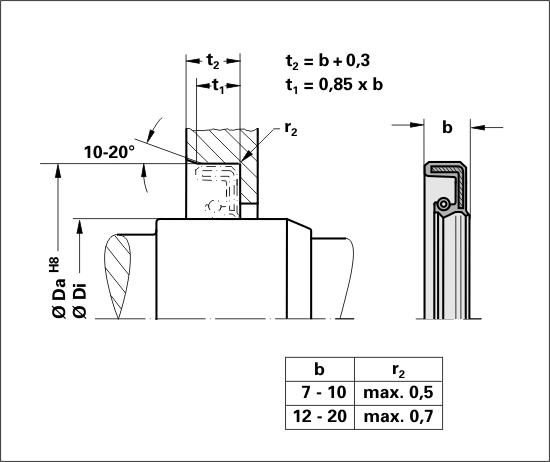 Shaft seal, DIN 3760, Form AS up to 10 bar.