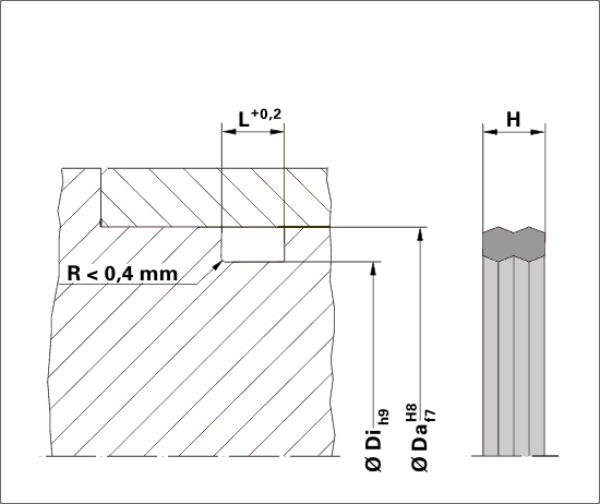 Static radial sealing with high extrusion resistance and increased tightness against leaks in the case of pressure pulsations.