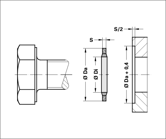 Pressure without countersink: ≤ 400 bar (Da ≤ 40 mm); 250 bar (Da > 40 mm)