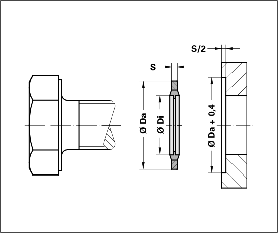 Pressure without countersink: ≤ 400 bar (Da ≤ 40 mm); 250 bar (Da > 40 mm)